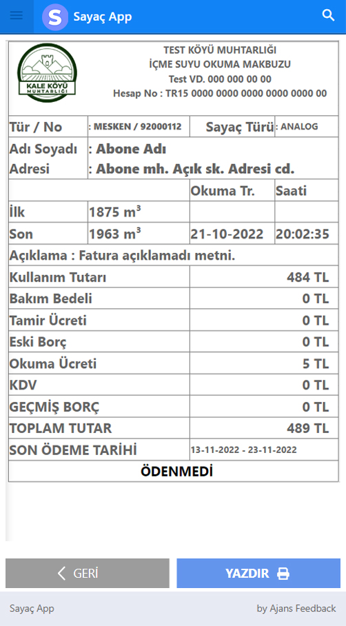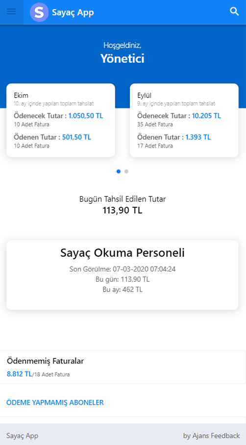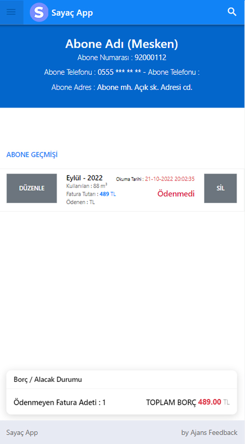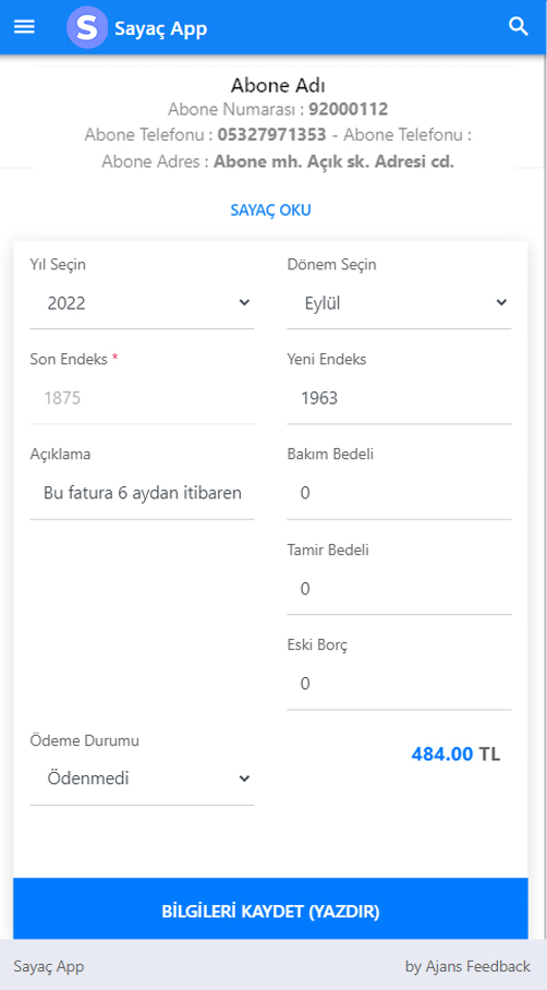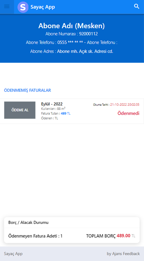 Sayaç App, Su dağıtımı ve hizmetini kendi bünyesinde verenler için özel olarak hazırlanmıştır. Gecikme zammı, kısmi ödeme, ek ücretlendirmeler vb tüm modüller, mevcut kullanıcıların ihtiyacı doğrultusunda geliştirilmiştir.